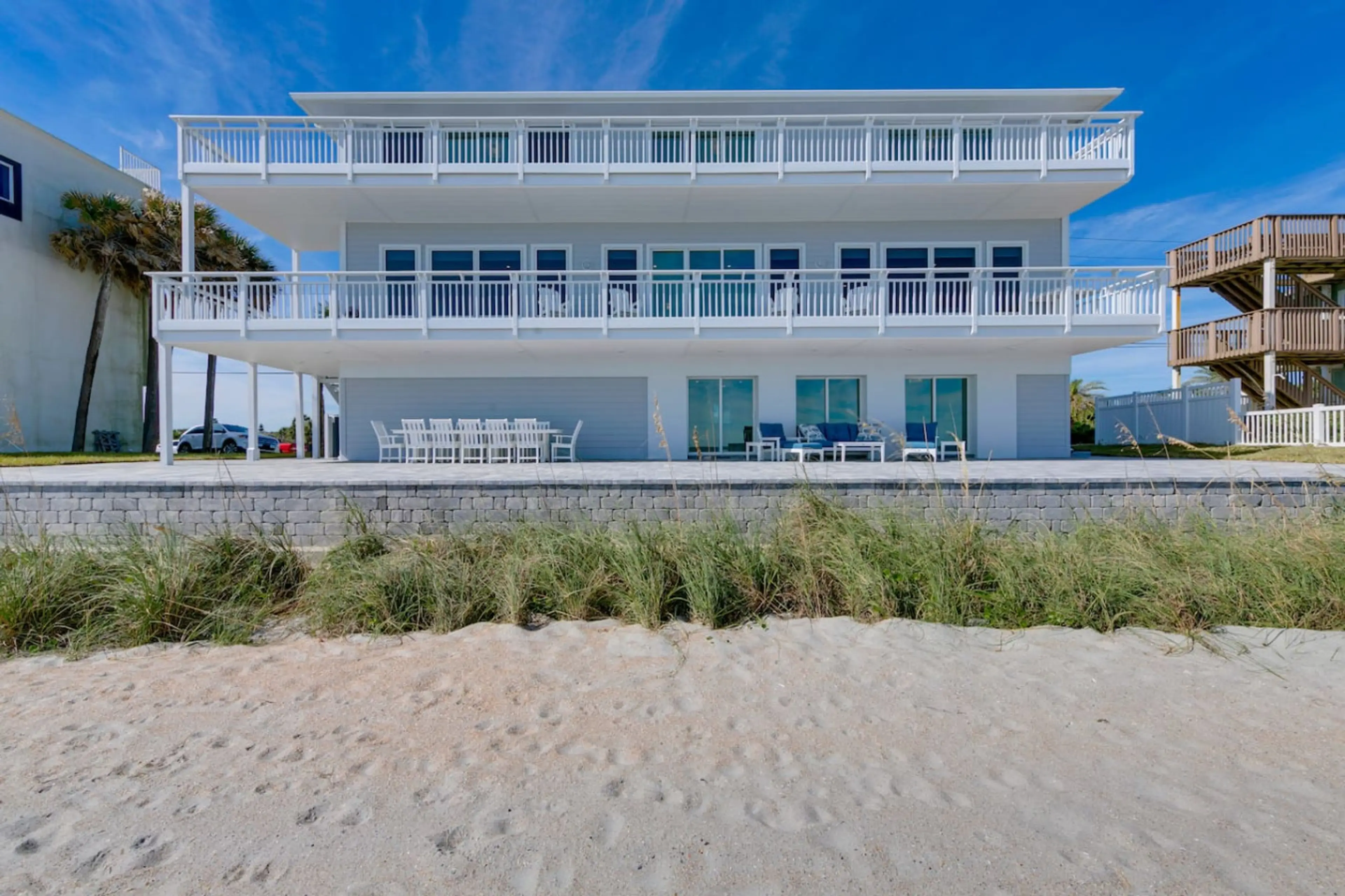 Welcome to "Beach Therapy", This stunning 5-bed, 4-bath home offers the perfect combination of luxury, comfort, and breathtaking views. Completely renovated in 2023 with new furniture, panoramic ocean views. An oceanfront paver porch for entertaining guests. Situated conveniently between downtown St...